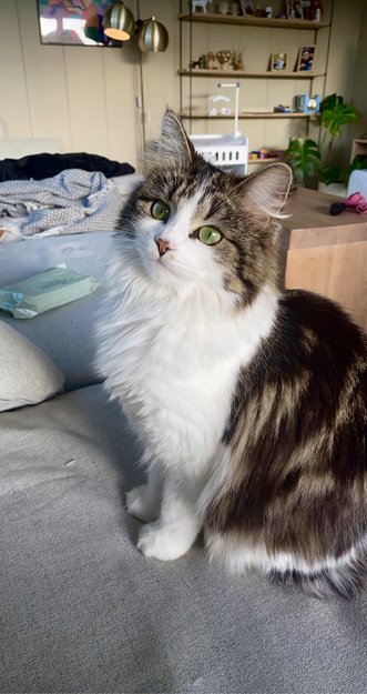 Lucy er en skikkelig utekatt, men kommer alltid hjem og står utenfor. Men nå har vi ikke sett henne på over et døgn og er bekymra.. Hun har stor, fluffy hale, spraglete på kroppen og hvitt bryst og bein/poter..