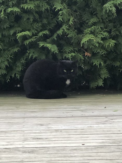 Pusen har «bodd» på vår terrasse i et ullpledd en ukes tid. Er litt sky, så har ikke fått sjekket hverken kjønn eller hvorvidt den er chipet.