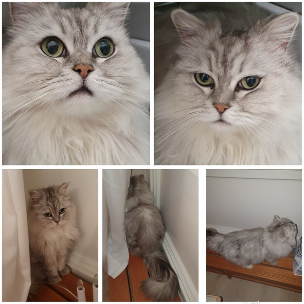 Jeg gikk på tur fra Haslum til Bekkestua. Denne katten fotfulgte meg så jeg måtte snu for at den ikke skulle bli med hele veien. Da fulgte den med meg tilbake. Den har VELDIG kraftige floker/tover i pelsen sin, samt avføring i pelsen. Den mangler pels på en del av en flanke. Veterinær fant ingen chip. Den er tam.