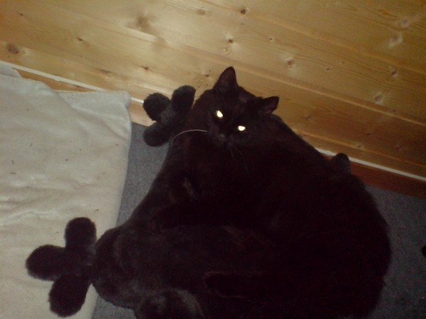 Pimo kom til rette i dag, lørdag 26.juli, etter 1 mnd og 1 uke vekk fra sitt hjem. Han kom gående opp mot huset, mjauende. Var skikkelig sulten, tynn og lett som ei fjær :( Virker sliten og trøtt, men veldig fornøyd med å være hjemme. Vi syns iallfall det var helt topp å få Pimo'n vårres hjem :)