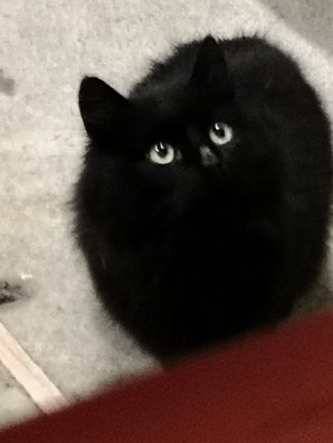 Redd og forvillet helsort? katt oppdaget når den prøvde å spise erter og gulrøtter som mine ender får.