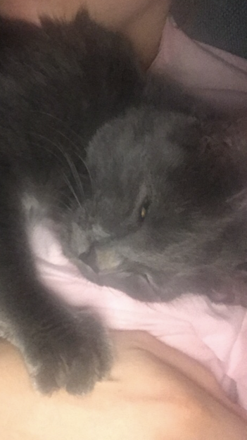 Helt grå, kort men fluffy pels, ikke full voksen da han er ca 6mnd, veldig kosete og lyder navnet sitt «nusse»