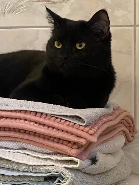 Helt sort, men et parti på magen med lite pels etter en operasjon.