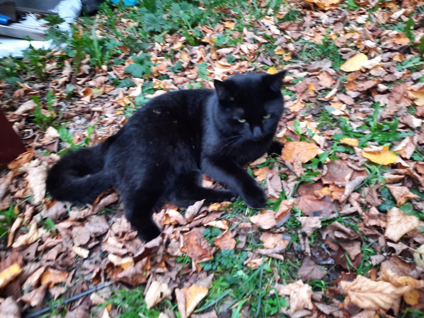 Han kom ikke inn i går kveld slik han pleier han pleier komme da jeg roper eller rister på dreamis som han elsker men han kom ikke denne gang. Vært ute i natt og i dag nen ingen storm og jeg er bekymret da dette er ikke lik han. Han er helt svart med en liten svart flekk mellom bena ganske stor gutt ca 2 år
