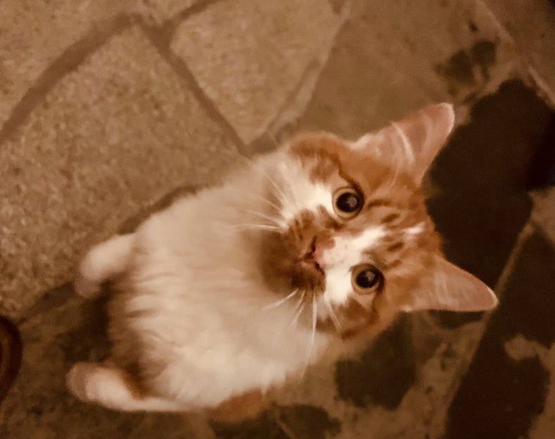Dukket opp hos oss for noen uker siden. Har tilhold i fjøset vårt. Veldig tam og kjælen men sloss og jager vekk våre 2 katter.
