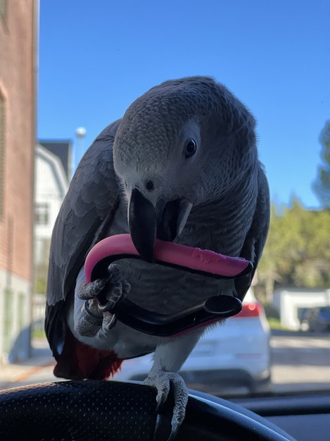 Den er en grå Jaco med rød stjert du ser at hun ikke er gammel bare 8 mnd masse fjer å veldig fin