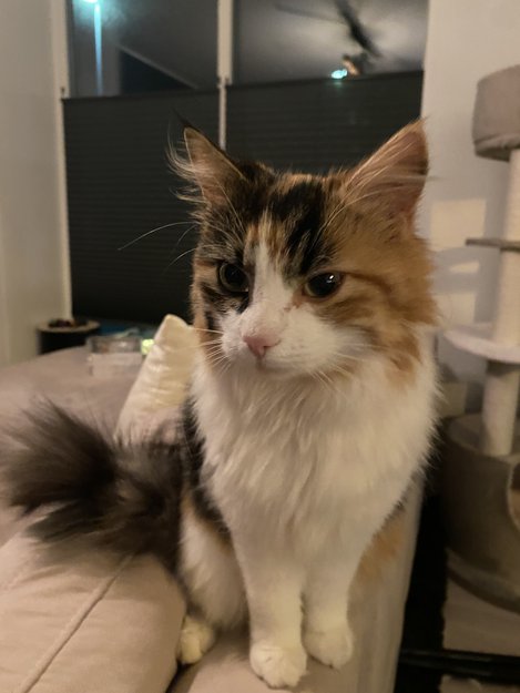 Skeptisk liten dame, skyr unna besøkende og krever tillit for å komme innpå. Veldig myk og god pels og veldig glad i kos når tilliten er der.