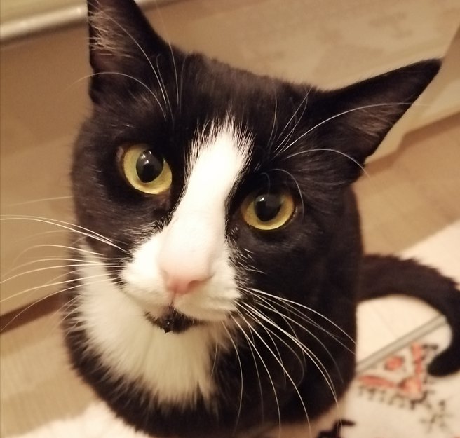 Liten pusejente på snart 2 årLitt hvitt på potene. Små poter foran. Et par hvite hår i nakken. Prater mye og svarer. Leken og veldig glad i mennesker. Kosete og kjælen