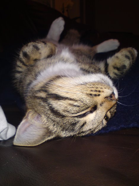 Hun er brun makrell med hvit under haka og på bryst. Noe hvitt på beina med en hvit trekant på hofta bak.