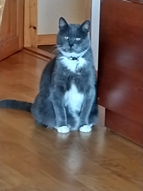 Han er en stor hannkatt og hadde et oransje reflekshalsbånd på seg da han løpte. Han er veldig redd for fremmede. Det er mulig at han finner ikke hjem og er på vei til Feltspatveien på Tasta hvor vi bodde før.