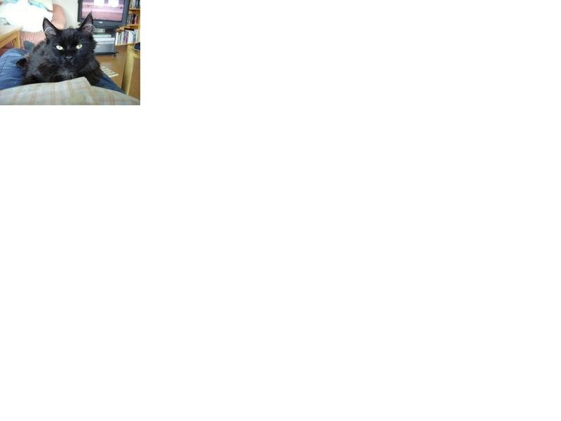 Sort med litt tufser i ørene. Halvlangt hår med tykk hale (som skogskatt).