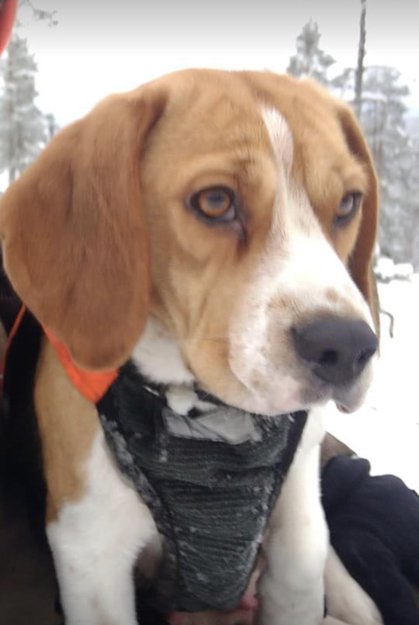 Beagel med Peiler som gikk tom for strøm, hun har vært savnet siden igår.