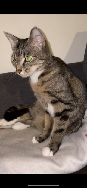 Katten har klart å komme seg ut av vindu i 6 etasje på Grønland ved vaterlands parken. Er red for Om den er skadet el stuck på et tak el no :( grå stripper veldig liten.