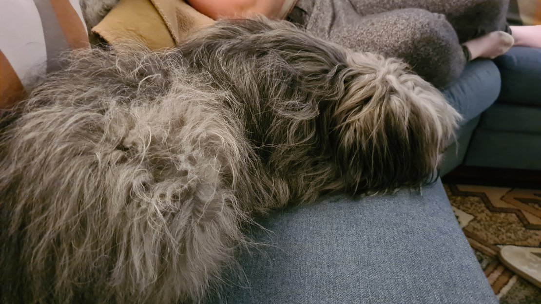 Langhåret hund grå spaghetti funnet i dag i området Holtungveien. Kontakt oss på 90887332