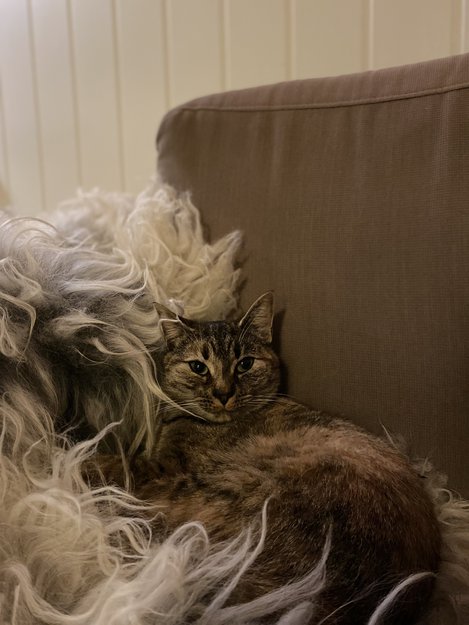 Arya kom hjem for 10min siden, hun har veldig tydelig vært innestengt. Hun er i god behold sett bort fra litt sult og at hun er litt skvetten❤️