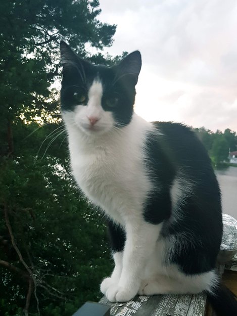 Hun har halsbånd med hjerte på som er navn og nummer på.