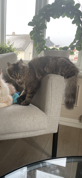Linemor er stort sett innekatt, men lufter seg på terrassen. Vi bor i 2 etasje. Hun må ha klart å komme seg ned på bakkenivå via naboens tak eller terrasse. Dette har hun gjort en gang før, men kom da tilbake etter 24 timer. Hun har nå vært borte siden Lørdag 23.04.22