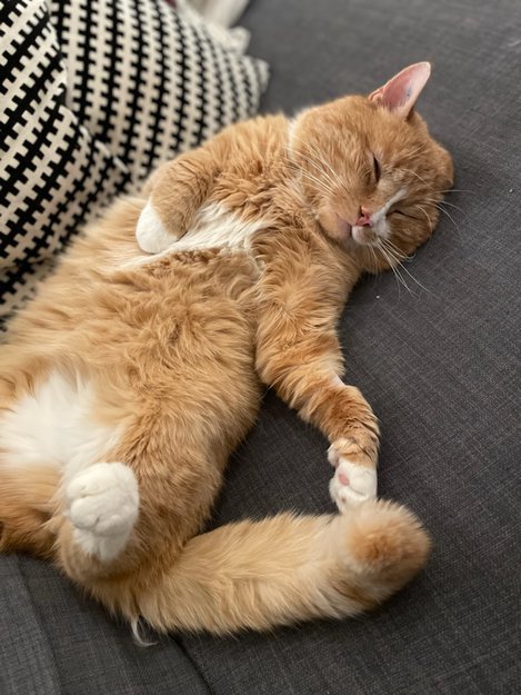 Dukket opp ved høgskolen i Lillehammer i begynnelsen av november. Eier etterlyst på Facebook uten resultat. Katten er veldig sosial, så helt tydelig kommer fra et hjem. Veterinæren anslår at han er rundt 5 år