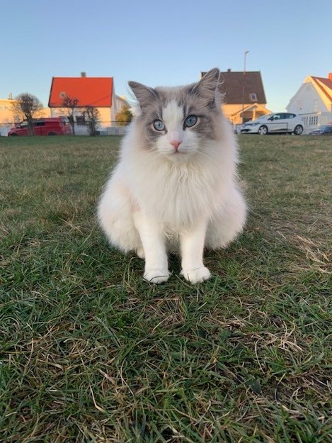 Funnet i naboens garasje;Snøball, som er veldig hjemmekjær har ikke vært hjemme siden 27.01.2022. Han unngår normalt fremmede og vi tror derfor han kan være sperret inne i en bod eller garasje.