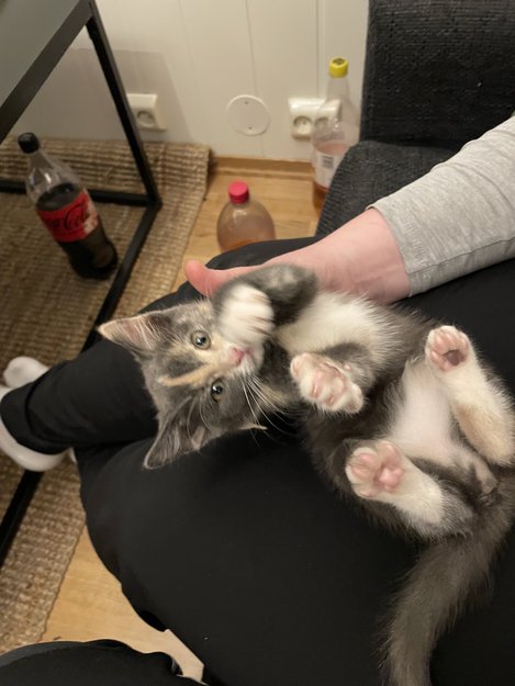 Katt på 4 mnd, kom seg ut, og ble skremt av vind. Vært ute over natten