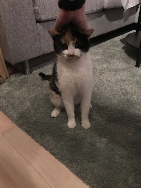 Hun virker vant med barn, så vil tro det er noen som savner denne dama. Tror ikke hun er sterilisert, vi finner heller ikke chip på henne. Hun er heller ikke så gammel tror jeg, rundt 1 år +-.