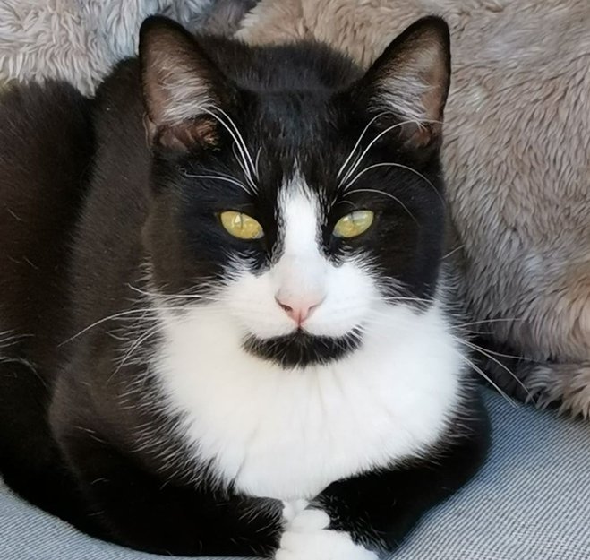 Svart og hvit. hannkatt var savnet i Fredrikstad