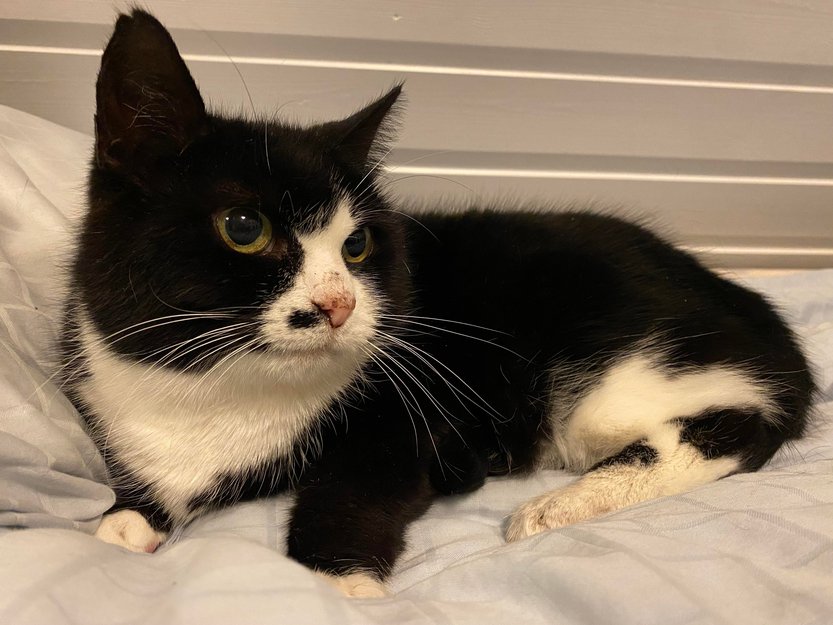 Hun er en snill og rolig huskatt som ikke finner tilbake til hjemmet sitt, gi gjerne beskjed hvis noen finner henne.