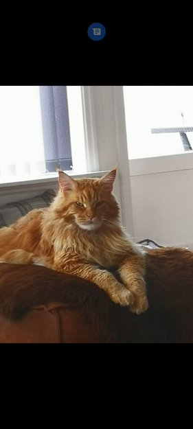 Rød stor hannkatt, med litt sjatteringer med hvit under haka. Lysere rød under buken. Medium langhåret, ca 11.5 kg.