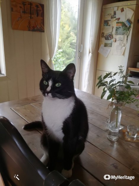 Han er født hos oss og vokst opp med "åpne" dører sammen med kattefamilien sin. Han er god kjent i området.