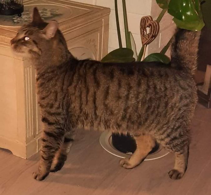 Korthåret ukastrert hannkatt, på ca 2,5 år. Er ikke id-merket