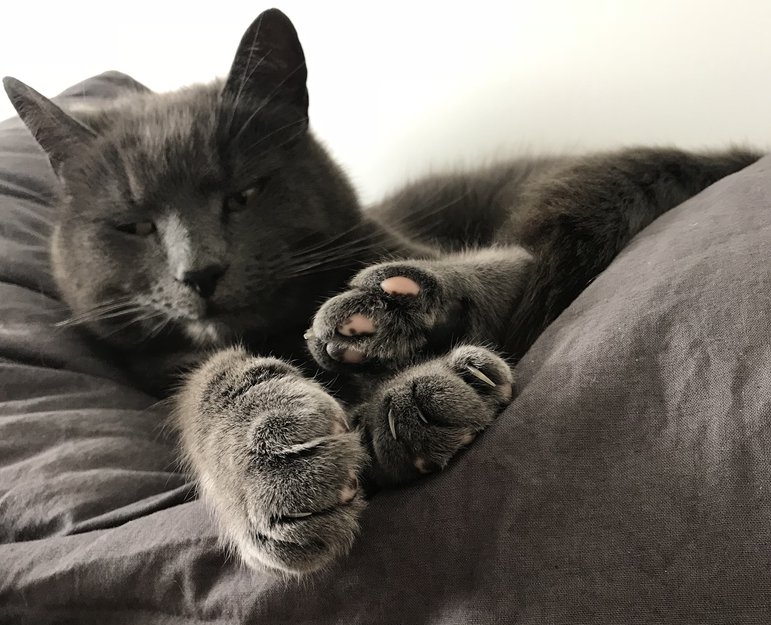 Helgrå, ingen spesifikke avtegn. Veldig sosial og alltid sulten.
