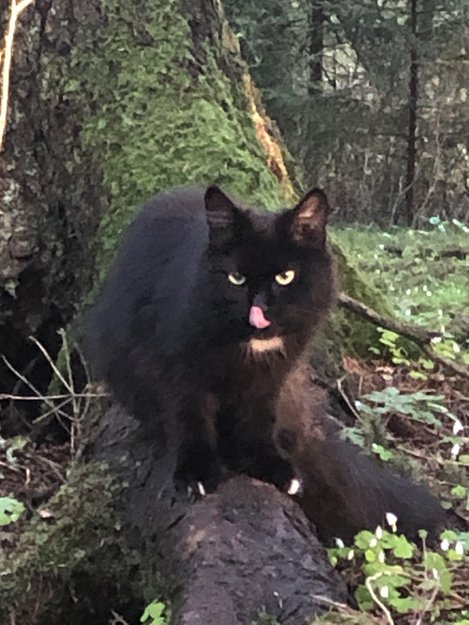 MonsAri, en sort mons med halv lang pels har vært borte siden lørdag for to uker siden. Vet ikke hva som har skjedd.