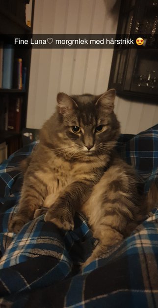 Luna hadde gps på. Sist registrert på Brøsetvegen 104. Ingen pus der. Hun har også gått langs Henrik Ourens veg.