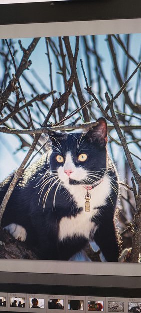 Veide ca 4 kg da han forsvant. Sort med hvitt avtegn i ansikt og halvt sort og hvit kjeve. Hvite poter. Sort hale. Ser det hvite avregnet tydelig på bildet.