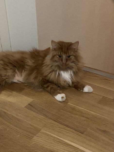 Katten rømte etter veterinærbesøk. Hadde på seg halskrage som nå kan være falt av. Bandasje på formannen og barbert på ryggen ved halen. Han er nokså stor, tabby.