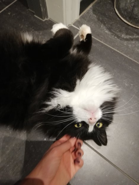 Han er stor kastrert hannkatt, kosete og kontaktsøkende. Glad i garasjer og boder.