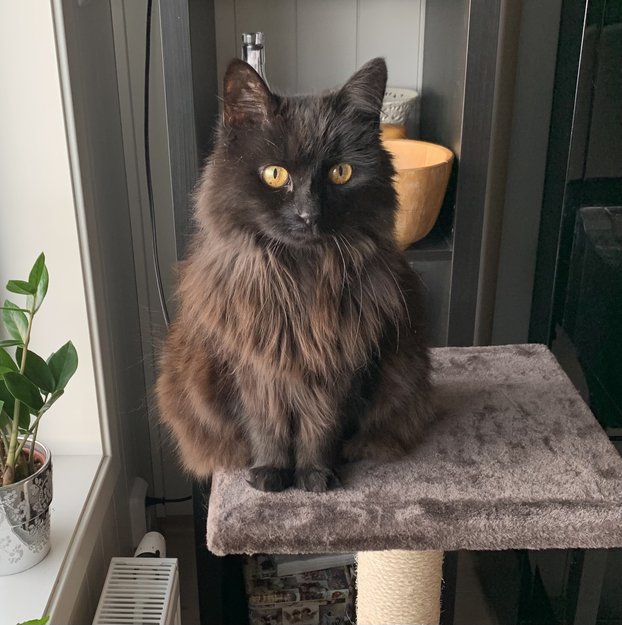 Nett og ikke så stor katt med mye pels. Ikke så glad i andre katter, men vanligvis sosial og glad i folk.