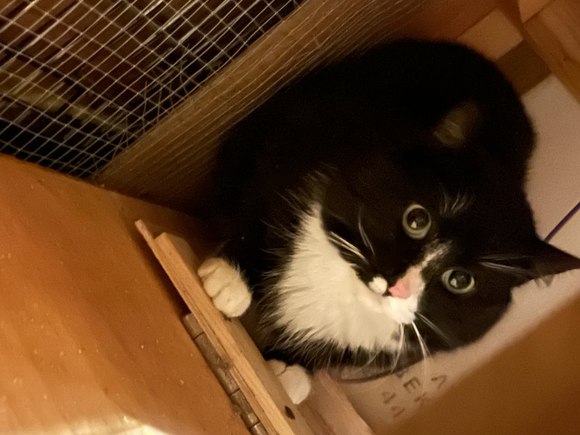 Katt som har holdt til rundt en adresse. Tatt inn i fosterhjem i regi Dyrebeskyttelsen Norge Hedmark