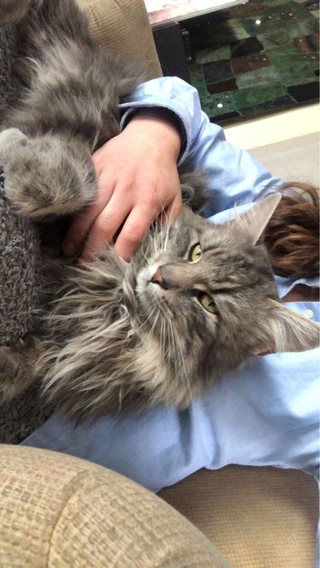 Fant den i gata der vi bort, har vært hos oss i over 1 uke. Den går inn og ut som den vil, den får også mag. Katten er veldig tynn med pelsklumper på størrelse med hender over hele kroppen. Virker altså som at den har vært ute veldig lenge alene. Den er heller ikke chippet, noe vi har sjekket.