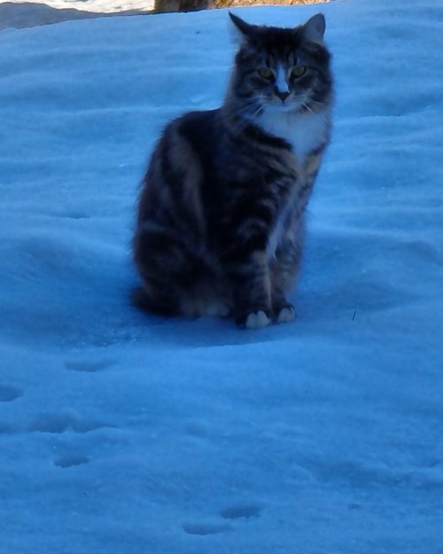 Vi slapp Simba ut som vanlig kl 05.30 han pleier å være borte i max 1 time før han kommer hjem for å ta seg en lur, men han har ikke kommet hjem siden igår (09.03). Han er veldig kosete og liker å slå av en prat med mennesker.