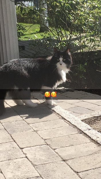 Jeg slapp han ut kl 1830. Han holder seg som regel rundt boligen, og pleier å komme inn for kvelden rundt 2200. D gjorde han ikke denne kvelden. Har ikke sett ham siden. Pleier å komme på navnet Mio. Han prater mye, og svarer alltid når vi roper.Vi har lett rundt huset, og i nærområder.
