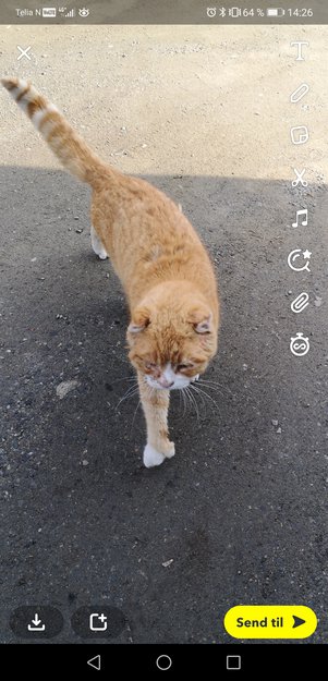 Katt som går ute og har kutt i ansiktet og rennende øyne og ser skadet ut. Gått her i noen dager.
