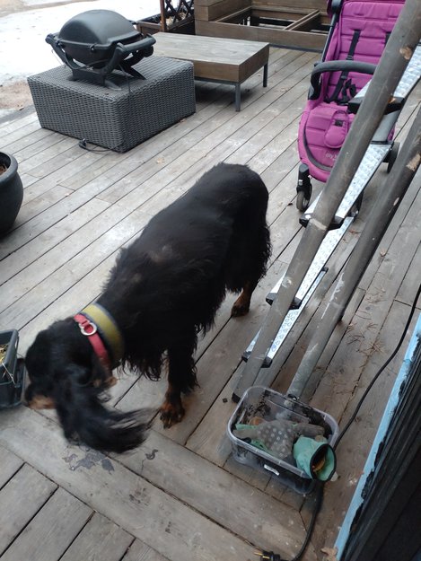 Denne hunden har kommet 2 dager på rad når jeg har ropt på katten vår, som er borte. Spist pusematen jeg setter ut hver dag. Ikke interessert i å hilse. Noen som savner den?