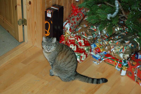 Hun er en 7 åring dame med tigerstriper i sort på grå bunn. Underhårene er beige