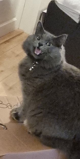 Øynene lyser gulgrønn i mørket - Han er en bred katt med mye pels. Veldig veldig tam og glad i kos ellers, men ikke veldig interesert k kos når han er kommet ut av huset. Virker litt fjern og daff - sen til å reagere på ting.