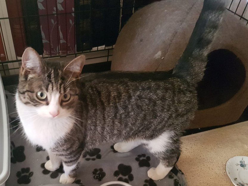 Liten av størrelse. hvit flekk på venstre bakben - se bilde.