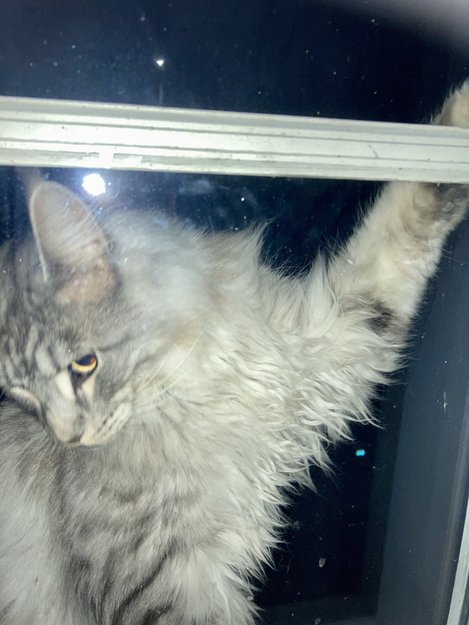 Det dukket i ettermiddag opp en nydelig stor katt, lignet en Maine Conon, utenfor hos oss, på Vigernes i Lillestrøm. Katten virket veldig tam og utrolig kontaktsøkende. Den ruslet opp stigen vår egen katt bruker opp til vinduet, når den vi inn. Den stod på stigen og tittet inn på meg. Da jeg sener åpnet vinduet var den kjapp og ville inn, noe som var helt utelukket, da vi har katt selv.