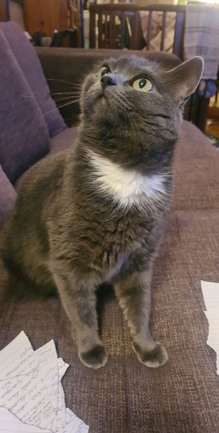Hun og søsteren ble funnet ute da de var små, og Mew er minst tam av dem. Så om hun blir funnet, vær så snill å kun ta kontakt med oss så vi kan få lånt en felle å fange henne selv. Hvis noen nærmer seg henne kan det være hun blir redd og stikker av igjen.
