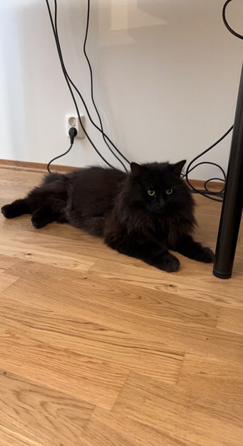 Litt flokete i pelsen. Kosen og kommer når du roper på den. Pratsom også