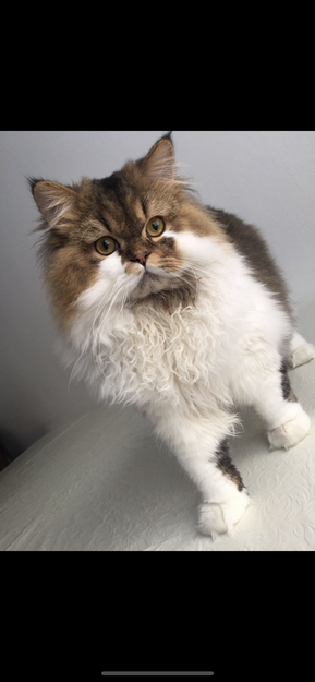 Elvis er langhåret og av fargen brown tabby bicolor. Han er hvit foran på ben, bryst, under magen og poter, men har mørkere/stripete farge i ansiktet og over snuten, overkroppen, bak på ben og poter og hale. Han har store gule øyne og litt «flatklemt» snute. Store ører som står rett opp med masse hår som stikker ut. Han er tillitsfull og snill. Oppfører seg nesten mer som en hund enn katt. Veldig lite redd, men med tanke på at han aldri har vært ute alene før er nok ganske redd og vi er veldig bekymret for han.